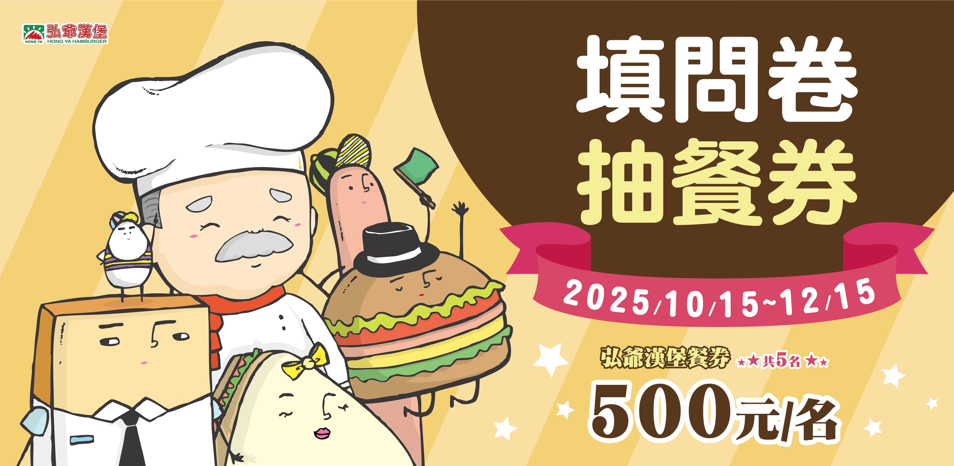 刮刮卡活動期間內填寫問卷 即可參加弘爺漢堡餐券500元抽獎!!