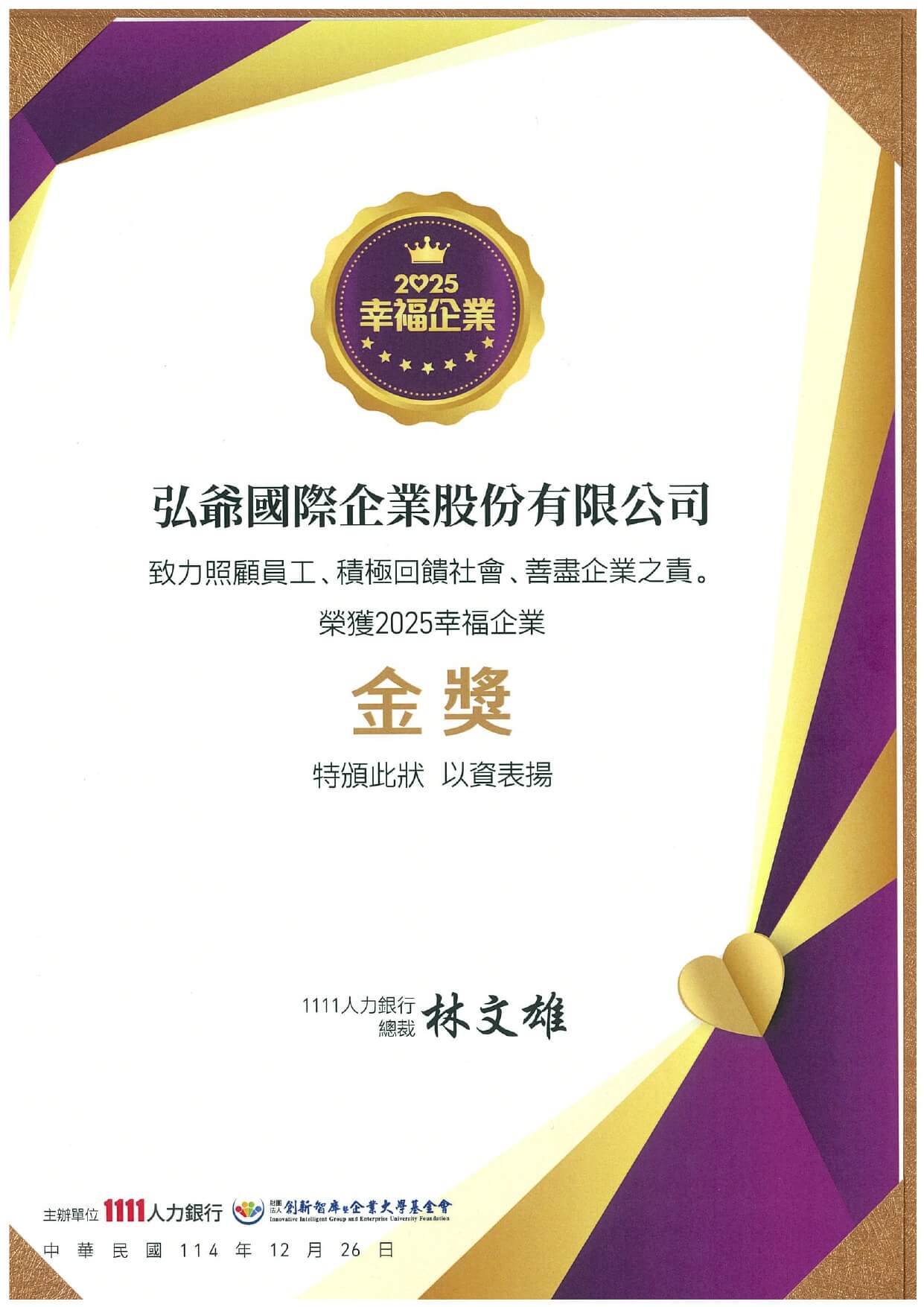 弘爺漢堡榮獲 1111 人力銀行「2025 幸福企業」金獎肯定!