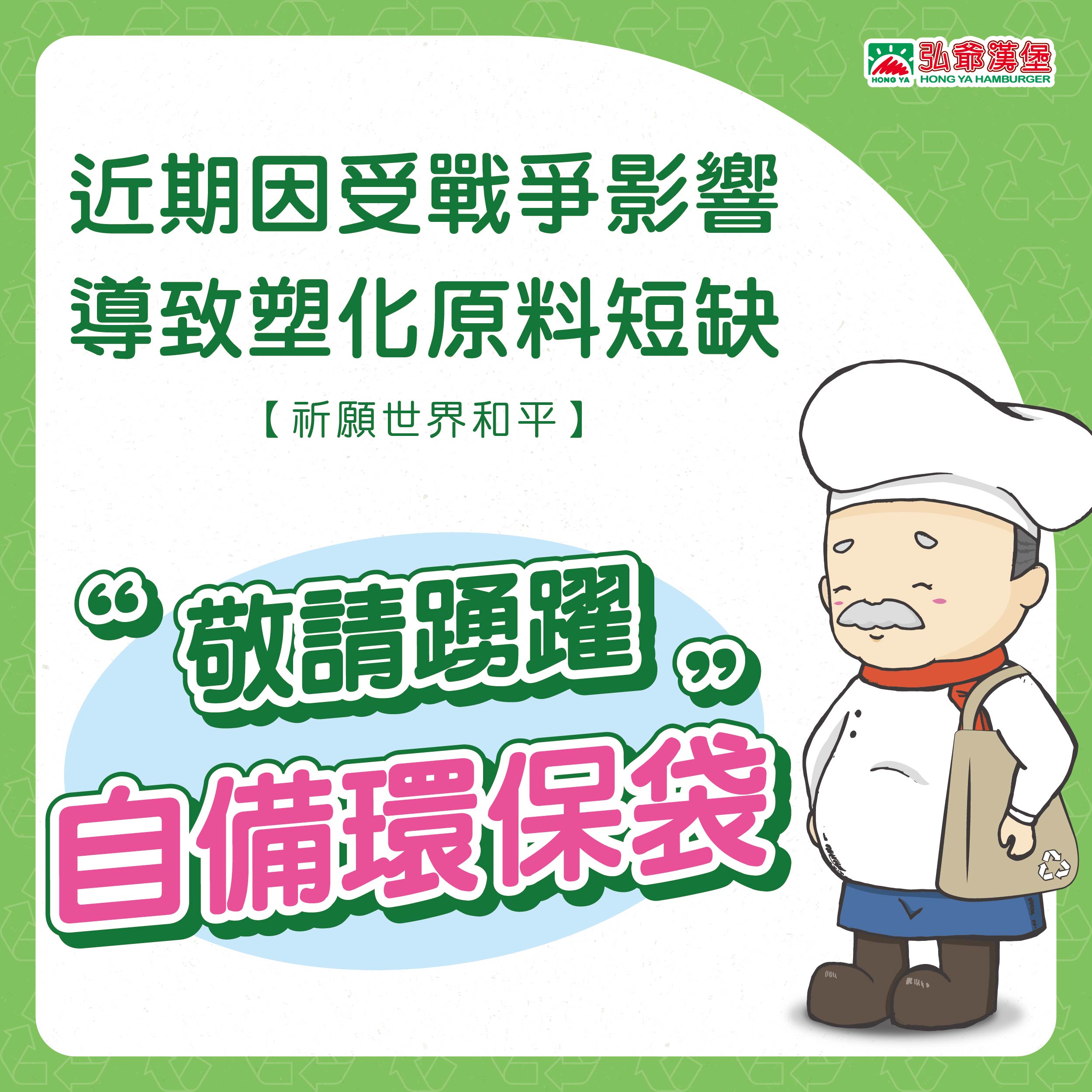在此誠摯邀請各位好友,來弘爺用餐、外帶時,隨手多帶一個環保袋。