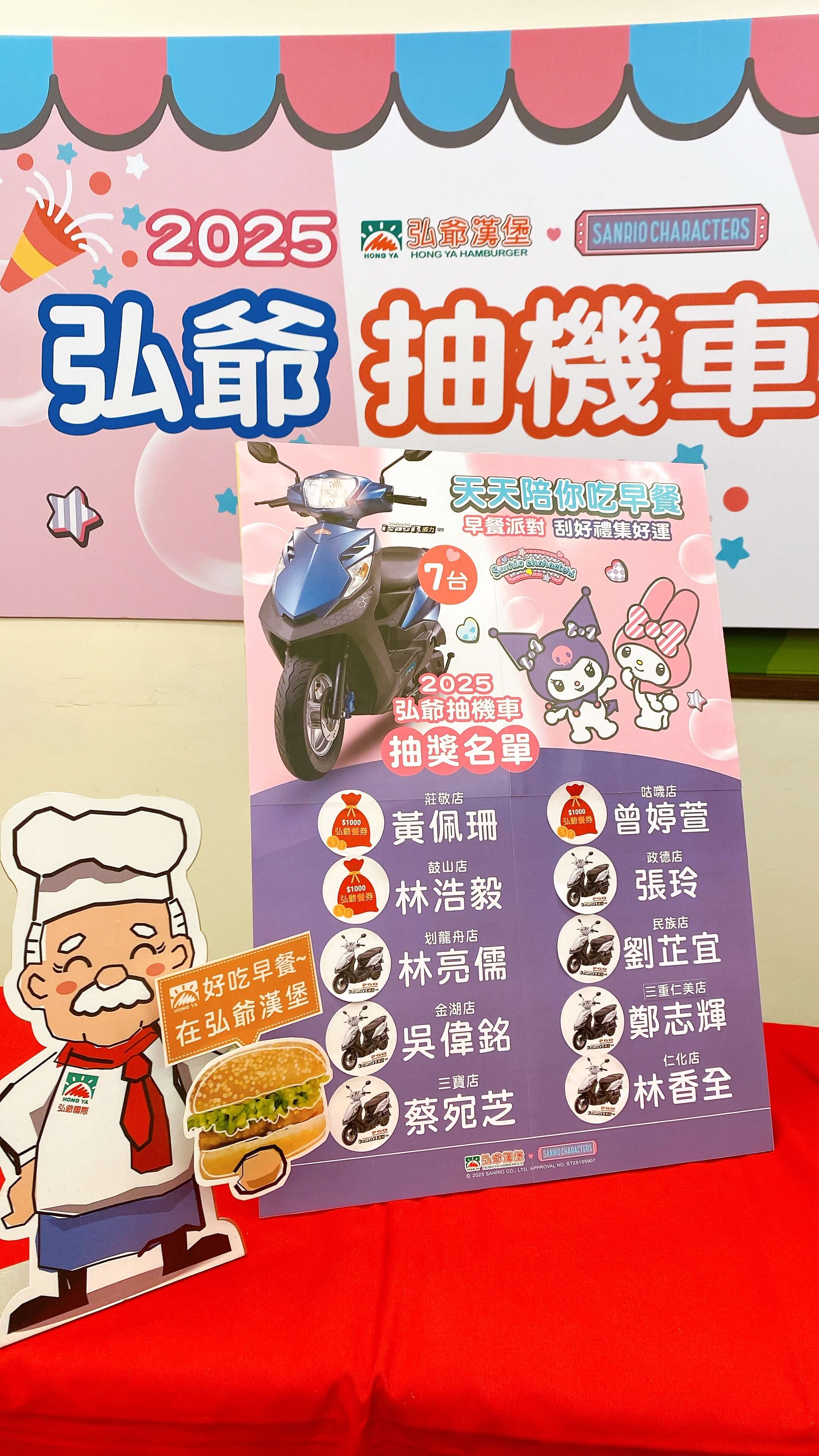 - 機車中獎人請於 2026 年 01 月 23 日(五)前, 與弘爺總部人員聯絡完成領獎相關事宜; 餐券得獎者請依規定繳交簽收文件並遵守餐券使用注意事項。