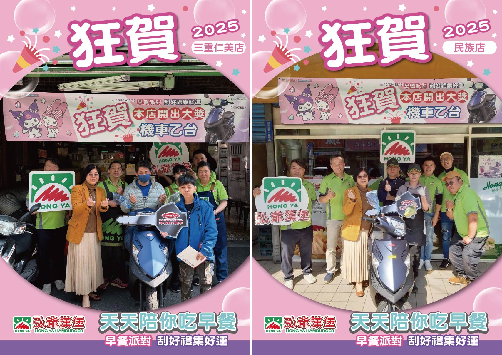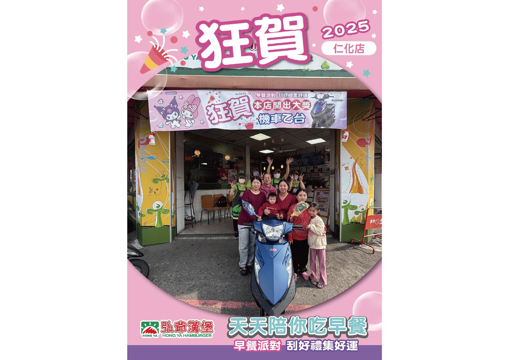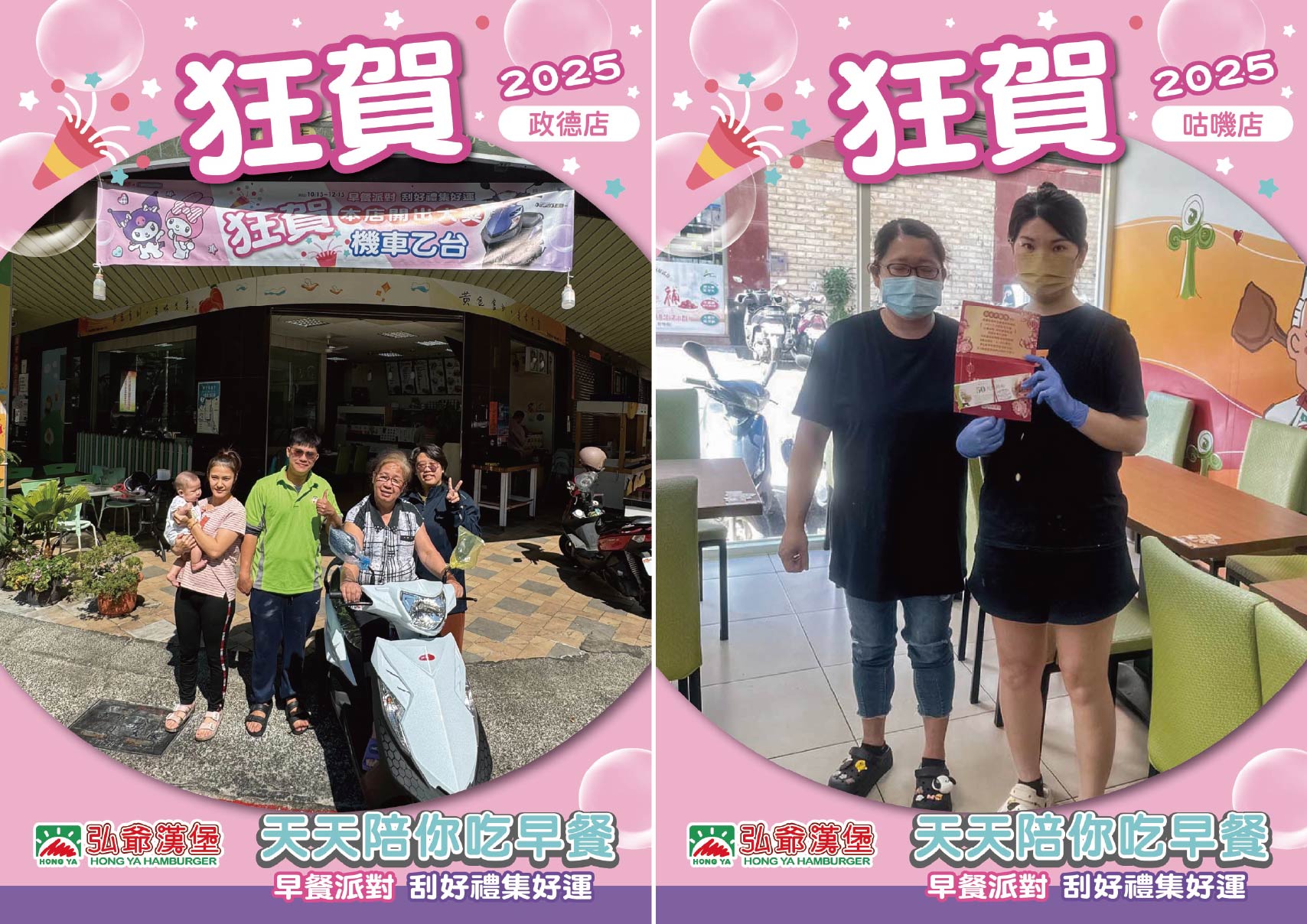 - 機車中獎人請於 2026 年 01 月 23 日(五)前, 與弘爺總部人員聯絡完成領獎相關事宜; 餐券得獎者請依規定繳交簽收文件並遵守餐券使用注意事項。